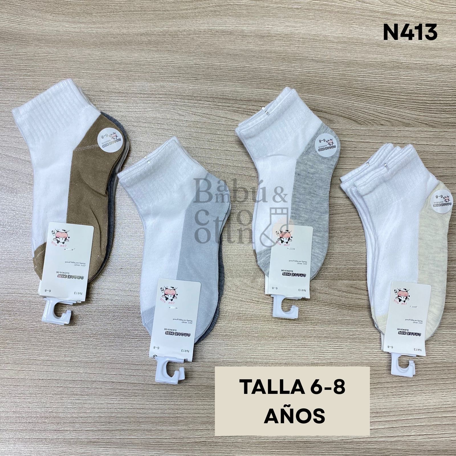 N413 TOBILLERAS BLANCAS NIÑO/NIÑA ALGODÓN PLANTA COLOR TALLA 6-8 AÑOS S/. 18.00 SOLES